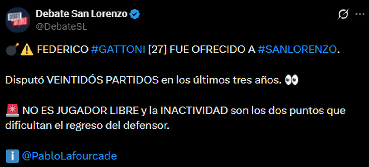 En este contexto, en las últimas horas el periodista partidario Pablo Lafourcade aseguró que un ex San Lorenzo y River fue ofrecido para sumarse al Ciclón.