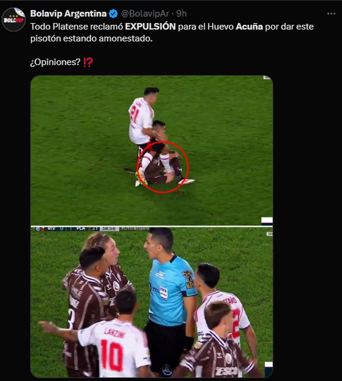 - Falcón Pérez no dio un claro foul de Franco Mastantuono (burlas en redes diciendo que "levantó" al jugador para continuar el ataque