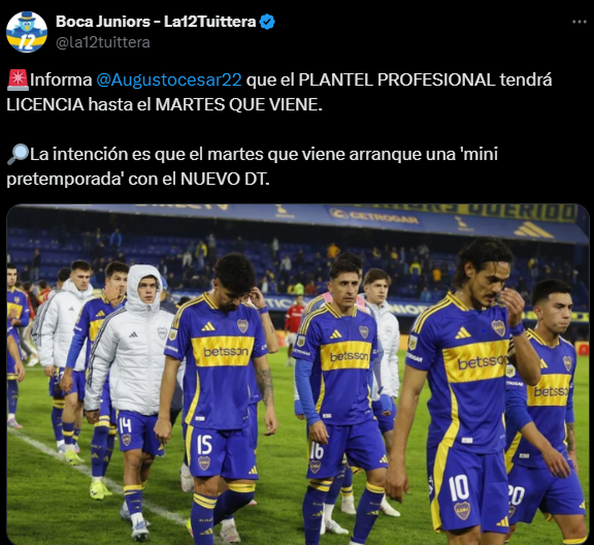 Lo cierto, es que el plantel del Xeneize tendrá licencia hasta el próximo 27 de mayo y la idea es realizar una mini pretemporada con quien será el nuevo entrenador, previo al Mundial de Clubes.