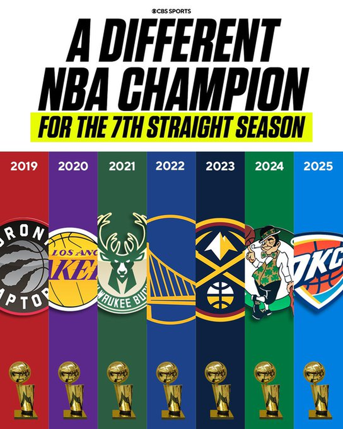 Por primera vez en la historia del básquet de USA, se registraron 7 campeones diferentes en los últimos 7 años de la NBA.