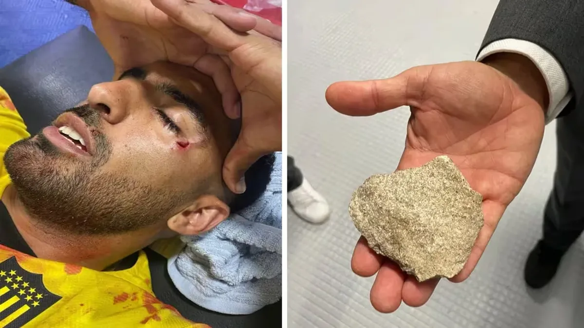 Uno de esos objetos fue una piedra que impactó en el rostro de Maximiliano Olivera, quien sufrió un corte en el pómulo y tuvo que ser trasladado a un centro asistencial para hacerse una tomografía que descartó lesiones óseas.