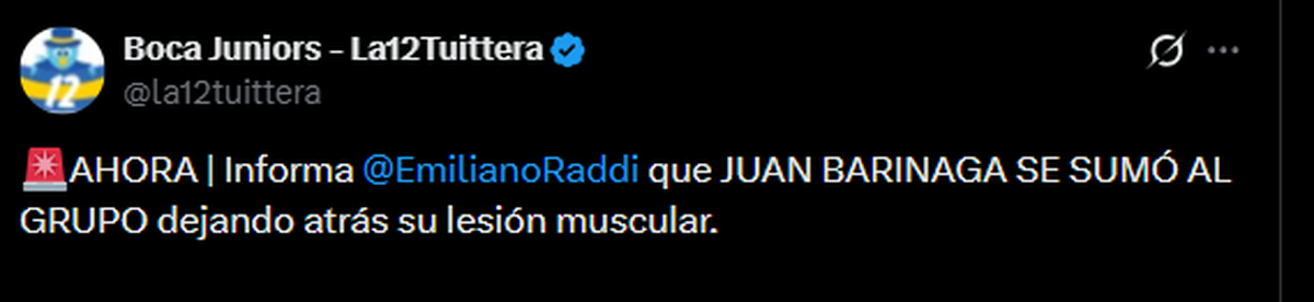 Quien compite en ese puesto es Juan Barinaga, que había sufrido un pequeño desgarro en el aductor y por ese motivo se perdió los últimos encuentros.