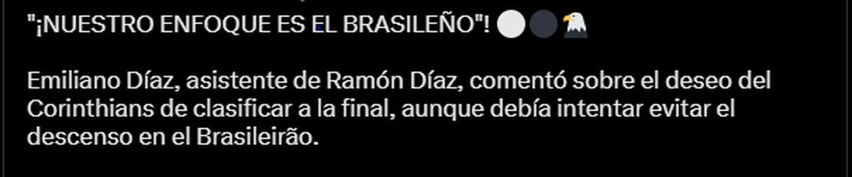 De igual manera, Emiliano Díaz, hijo y ayudante de campo de Ramón, dejó en claro que "el enfoque está en el Brasileirao", lo cual tiene sentido, ya que allí se están jugando el hecho de no descender.