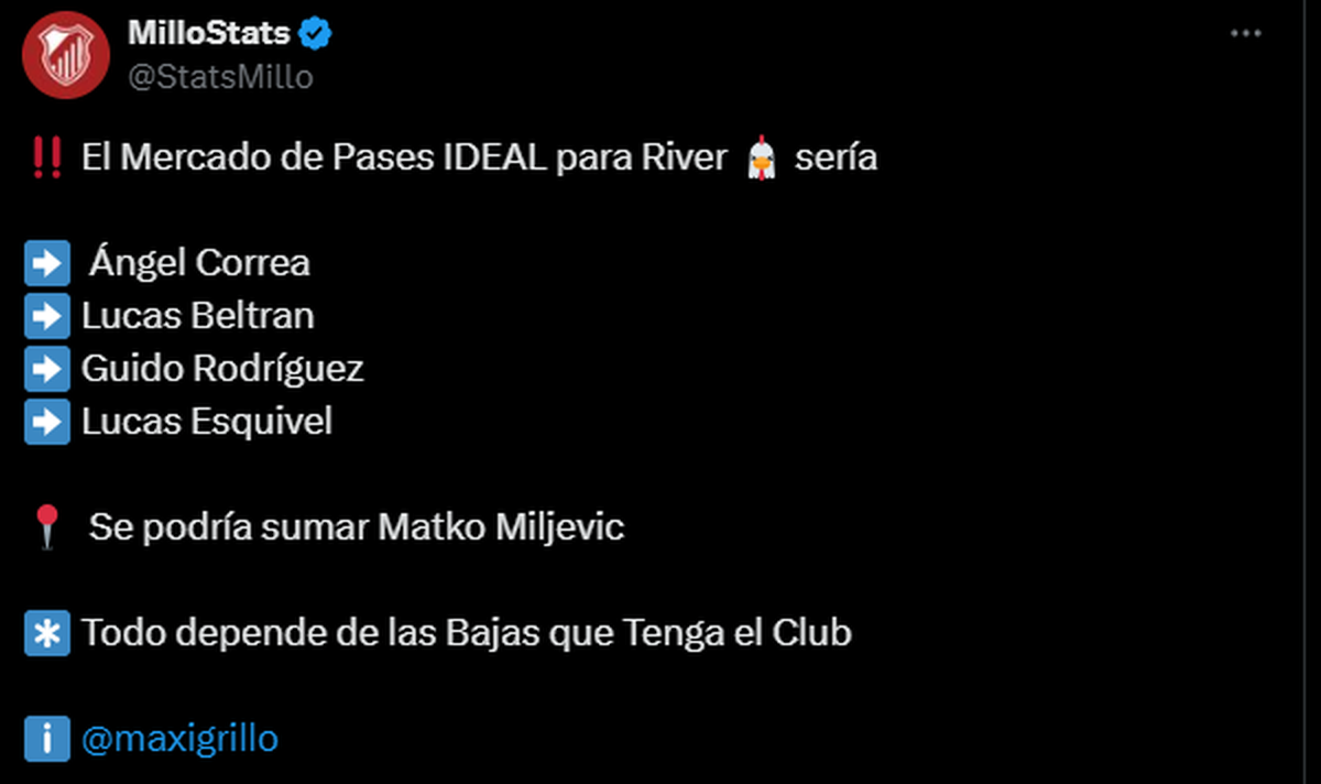Según informó el periodista Maxi Grillo, así sería el mercado de pases ideal del conjunto de Núñez en vistas al Mundial de Clubes: