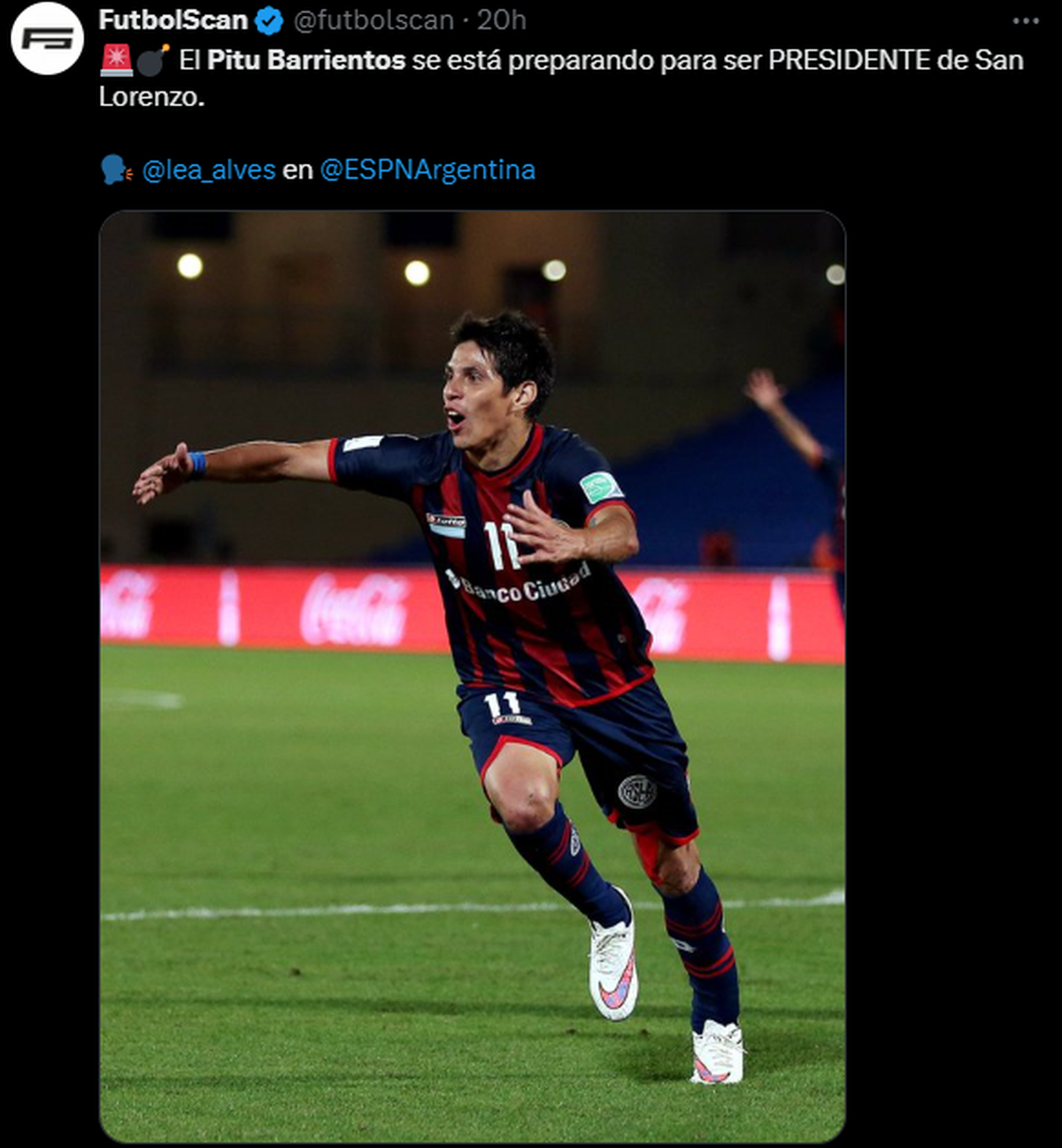 El periodista de ESPN Leandro Alves afirmó que hay un jugador que fue campeón de la Copa Libertadores con San Lorenzo, que sueña con ser Presidente del club de Boedo.