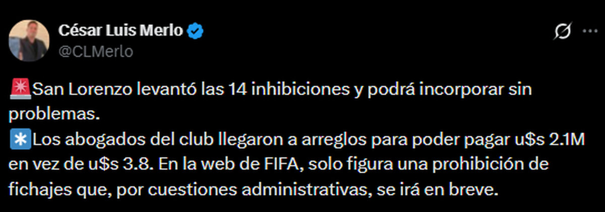 Tras quedar libre, el delantero comenzó a sonar en distintos clubes y uno de los que aparece como interesado es San Lorenzo de Almagro. El periodista de ESPN Leandro Alves aseguró que el Ciclón le realizará una oferta formal, aunque todo indica que en una primera instancia sería rechazada.