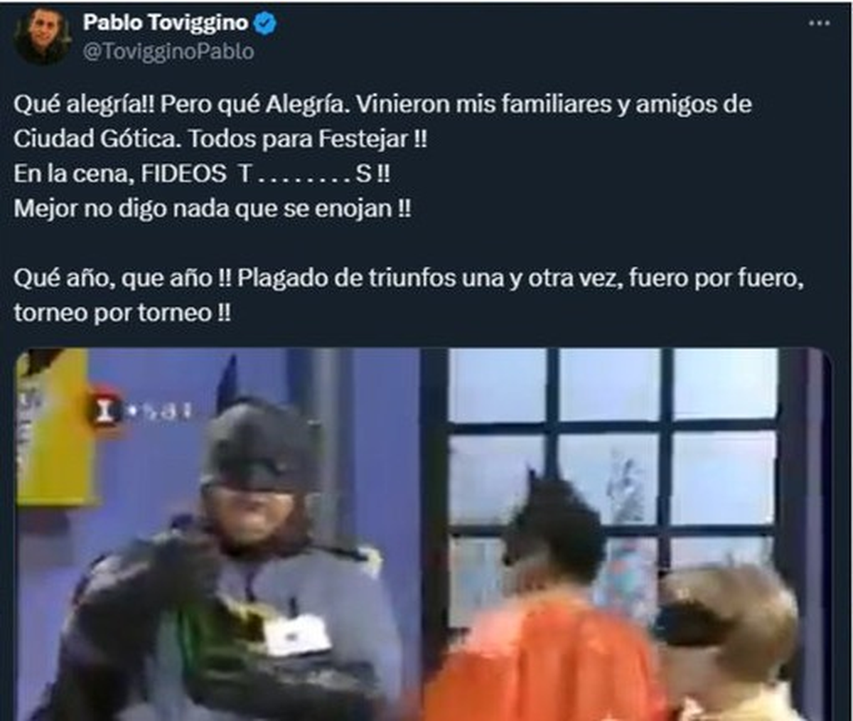 "Qué alegría!! Pero qué Alegría. Vinieron mis familiares y amigos de Ciudad Gótica. Todos para Festejar !! En la cena, FIDEOS T . . . . . . . . S !! Mejor no digo nada que se enojan !!