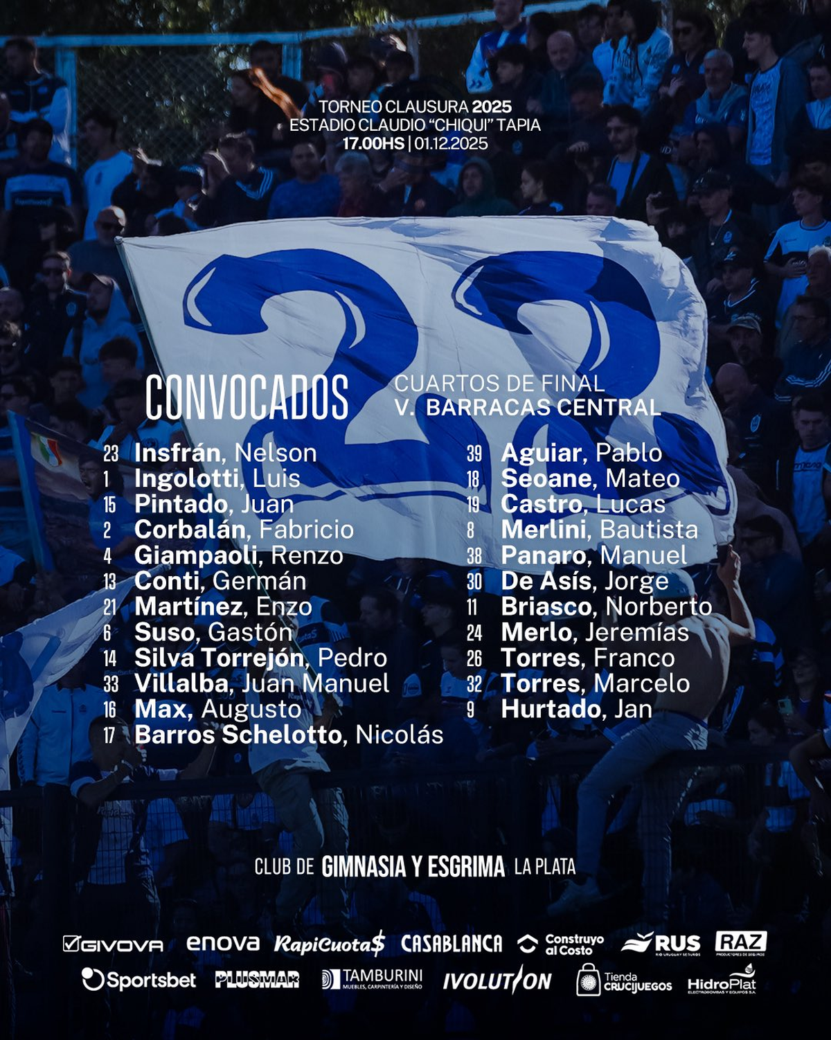 A partir de las 17hs en el Estadio Claudio Fabián Tapia y con televisación de ESPN Premium se miden por los cuartos de final del Torneo Clausura, Barracas Central y Gimnasia de La Plata. El ganador se enfrentará ante Estudiantes de La Plata que venció a Central Córdoba por 1 a 0. La semifinal será para alquilar balcones, ya que o se da el clásico de La Plata o un Tapia vs Verón. Solo en Argentina.