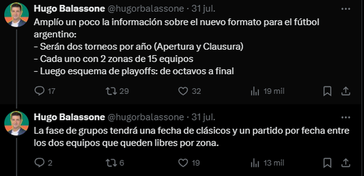 Hugo Balassone en TyC Sports y formato fútbol argentino 2025