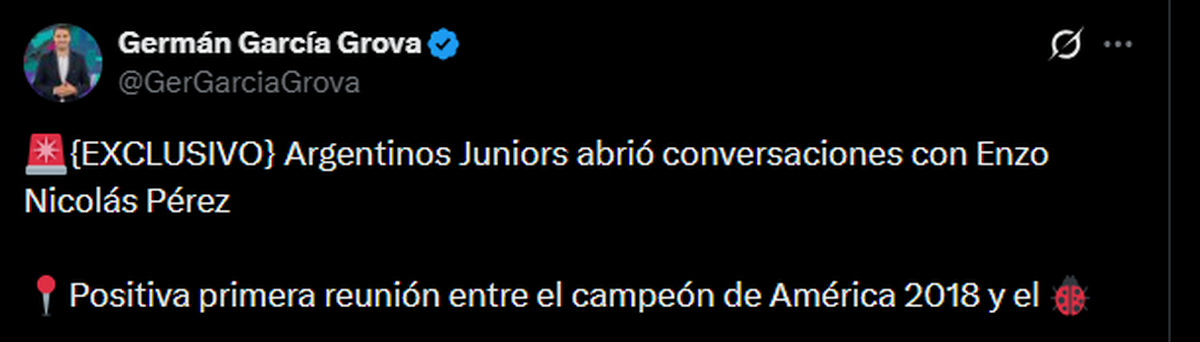 Así como Germán García Grova aseguró que Enzo Pérez podría continuar su carrera en Argentinos Juniors, confirmó que hay dos futbolistas por los que avanza el club de Núñez.