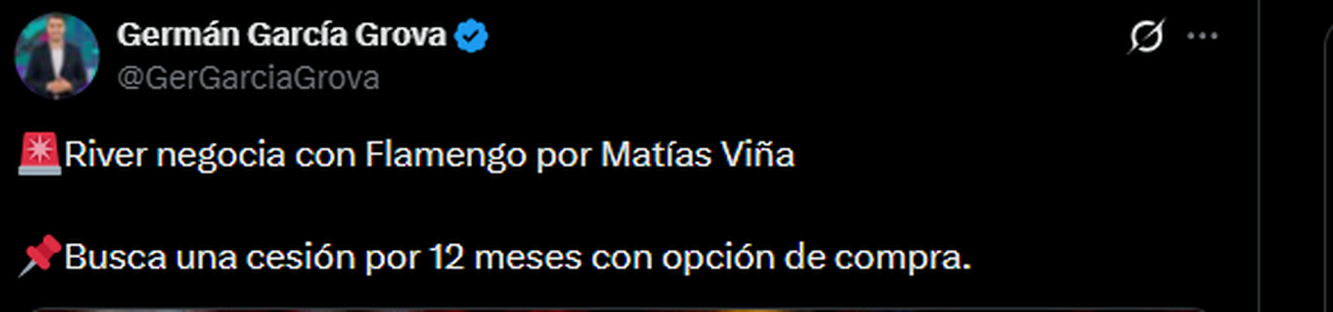 Al respecto, el periodista Joaquín Tabares señaló que “aparece como una alternativa y que es muy difícil su salida del Bologna. En River esperan saber si quiere seguir siendo suplente en Italia o si prefiere sumar minutos para llegar mejor preparado al Mundial. Todavía no hay ninguna oferta sobre la mesa”.