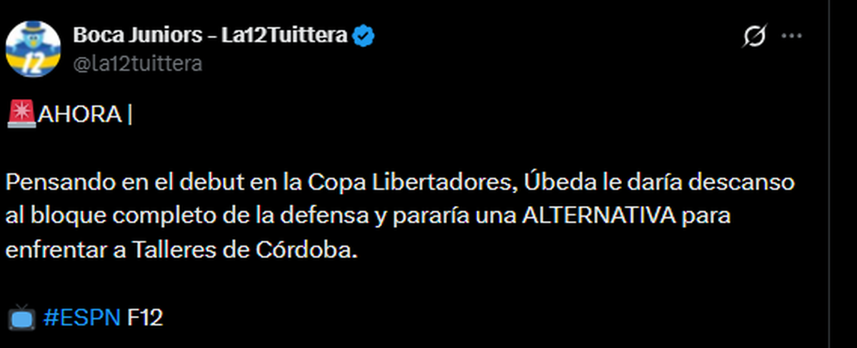 En lo futbolístico, quien toma las decisiones es Claudio Úbeda, actual entrenador del primer equipo. Y en las últimas horas, el DT tomó una determinación fuerte de cara al debut del Xeneize en el certamen continental.