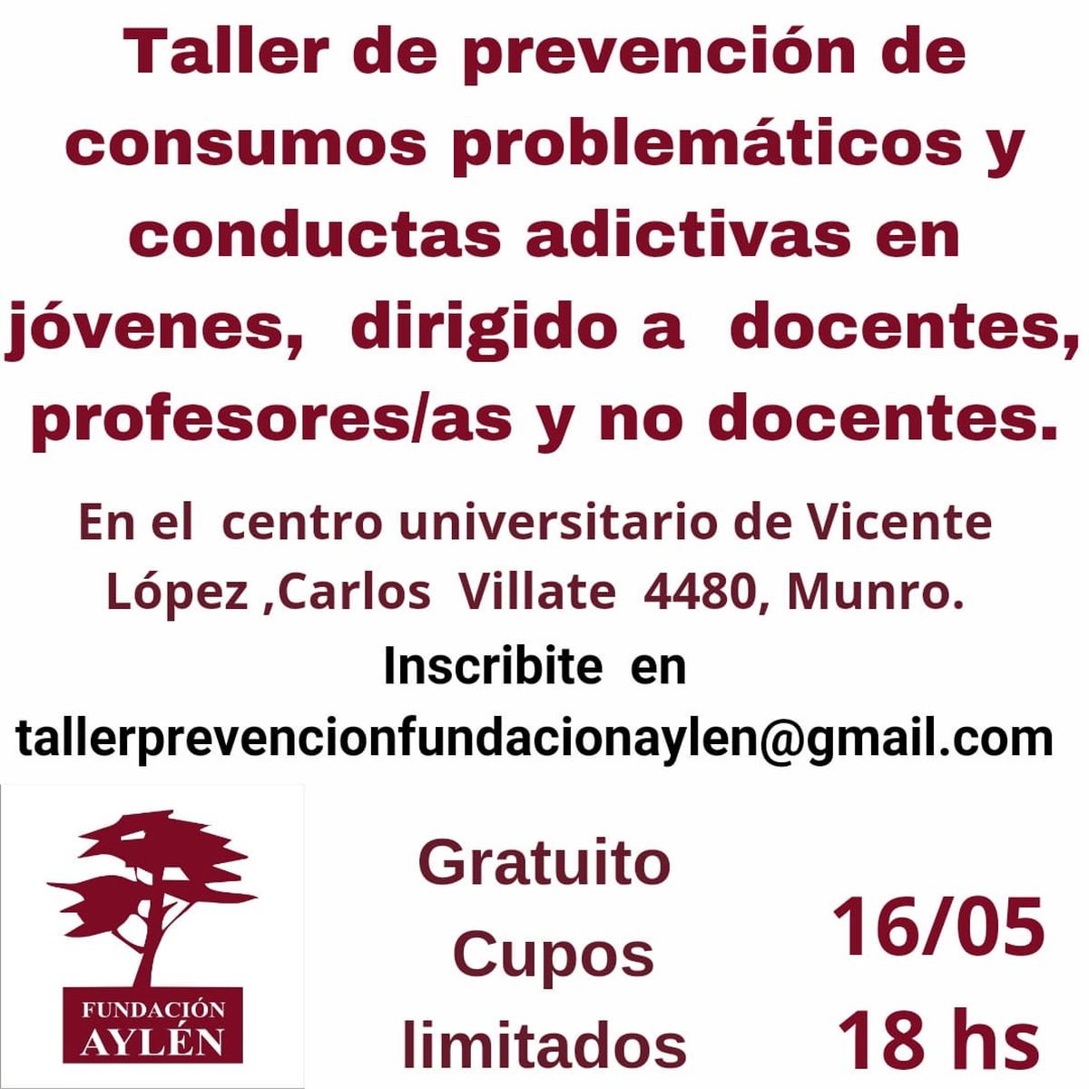 La comunidad educativa es un lugar privilegiado de intercambios, de encuentro y generación de vínculos, de promoción de proyectos de vida y proyectos comunitarios. Fundación Aylen cree que es esencial concientizar y capacitar a los responsables de ese ámbito privilegiado y muy permeable a la promoción de herramientas para repensar y reflexionar acerca de qué hacer ante los consumos problemáticos.