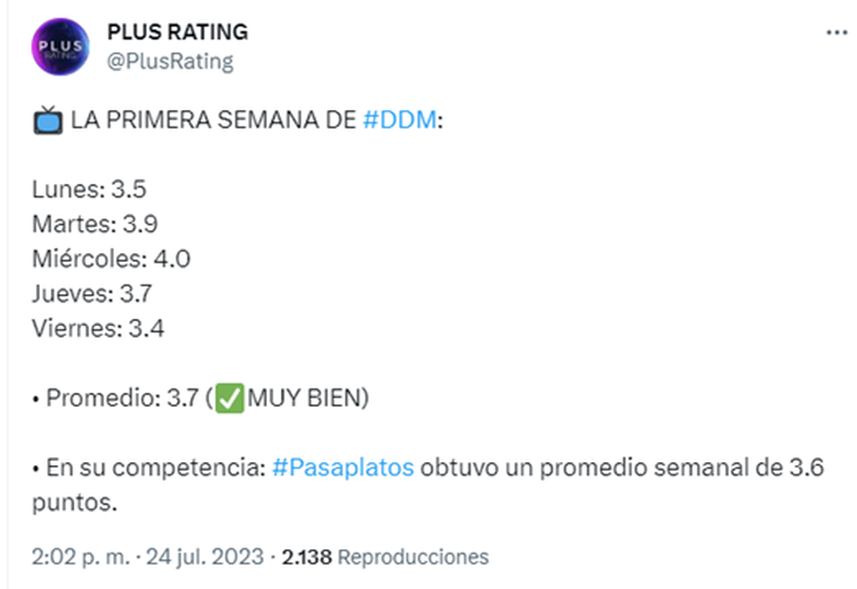En este contexto ya no es sólo El Nueve quien sufre dado que cada vez se aleja más del tercer puesto, sino que además desde El Trece comenzaron a preocuparse y no es para menos. Sin ir más lejos, la primera semana del último estreno de América TV, El diario de Mariana, superó en promedio semanal a la propuesta del canal del Grupo Clarín, Pasaplatos.