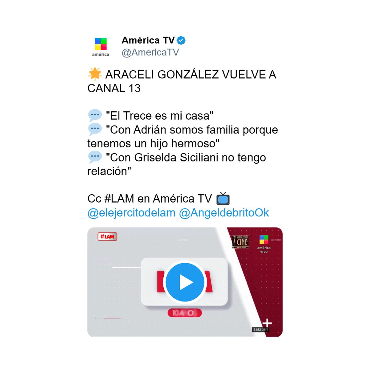 Cuando LAM le preguntó por la vieja declaración de Suar en la que dijo que no eran familia, Araceli devolvió con firmeza y sin dramatismo: "Él dijo que nosotros no éramos familia. Yo soy familia porque tuve un hijo hermoso, soñado, bello, pero no es mi problema. Él sabrá", despegándose del conflicto sin negarlo.