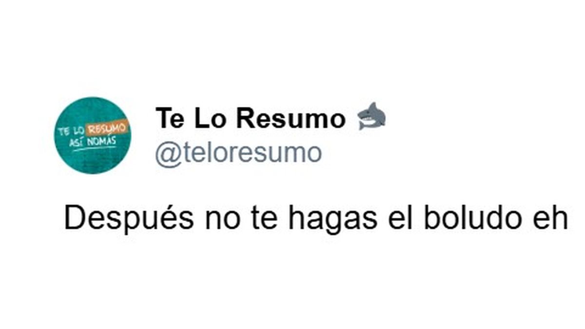 A esto le llegó la respuesta de Te lo resumo así nomás, seca y filosa: "Después no te hagas el boludo eh". Detrás de la cuenta está Jorge Pinarello, creador de uno de los canales más influyentes de YouTube que le valió un Martín Fierro en 2024 (que se lo enrostró al Gordo Dan con un "vamos a volver a arreglar el quilombo que armaron ustedes"). Pero también defensor explícito del kirchnerismo y crítico permanente del gobierno de Javier Milei.