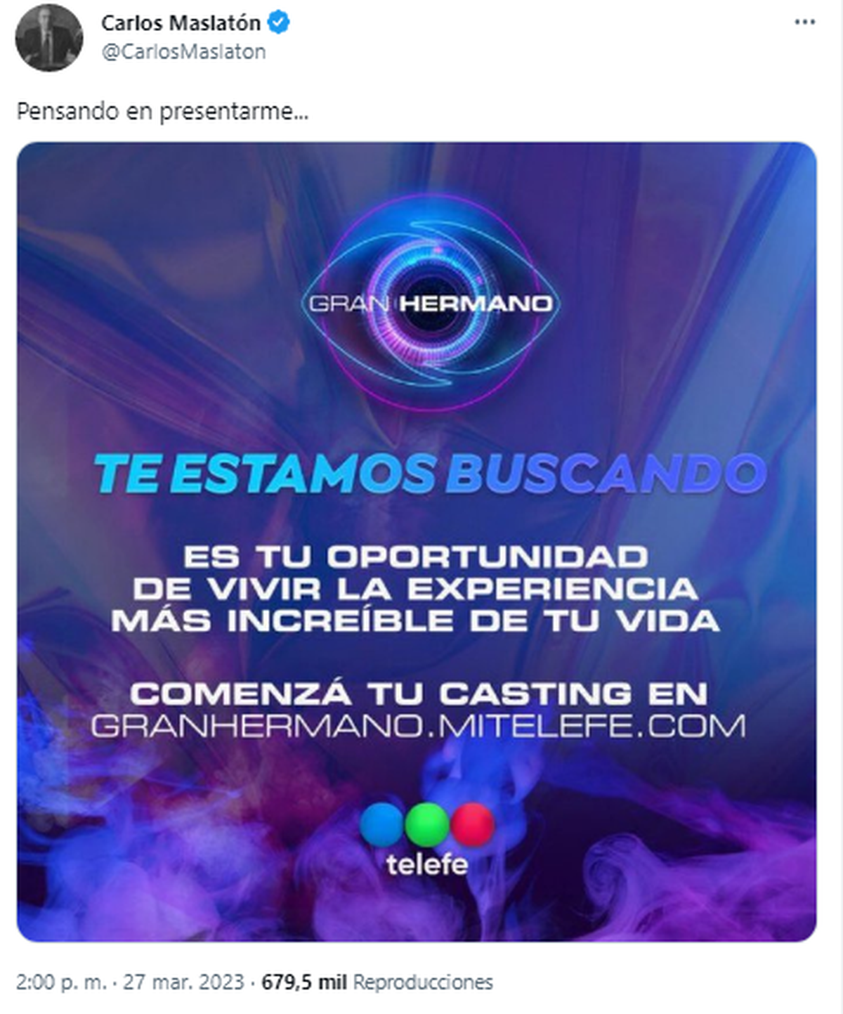 Carlos Maslatón anuncia en Twitter manija por Gran Hermano: