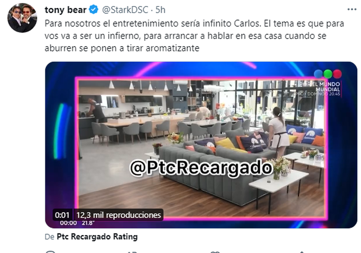 "Para nosotros el entretenimiento sería infinito Carlos. El tema es que para vos va a ser un infierno, para arrancar a hablar en esa casa cuando se aburren se ponen a tirar aromatizante."