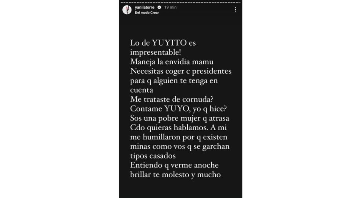 "¿A vos no te metieron los cuernos, Yuyito? ¿Estás segura? ¿Y a tu hija? Ojalá no le meta los cuernos Milei a Yuyo, porque hoy me enteré de unas cosas...", cerró desafiante Latorre.