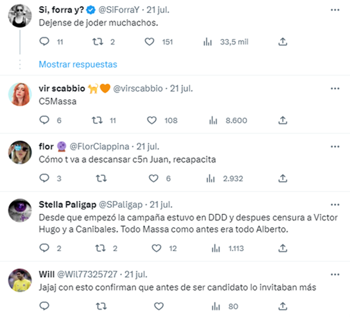 Sucede que el dirigente social aseguró en A24 haber sido vetado de C5N. Ante esto, la cuenta oficial del canal le respondió sin filtro, enumerándole las últimas oportunidades en las que fue citado tanto a la señal de noticias como a Radio 10. Este accionar hizo estallar a los seguidores kirchneristas acérrimos, los cuales denunciaron "sobres de Massa".