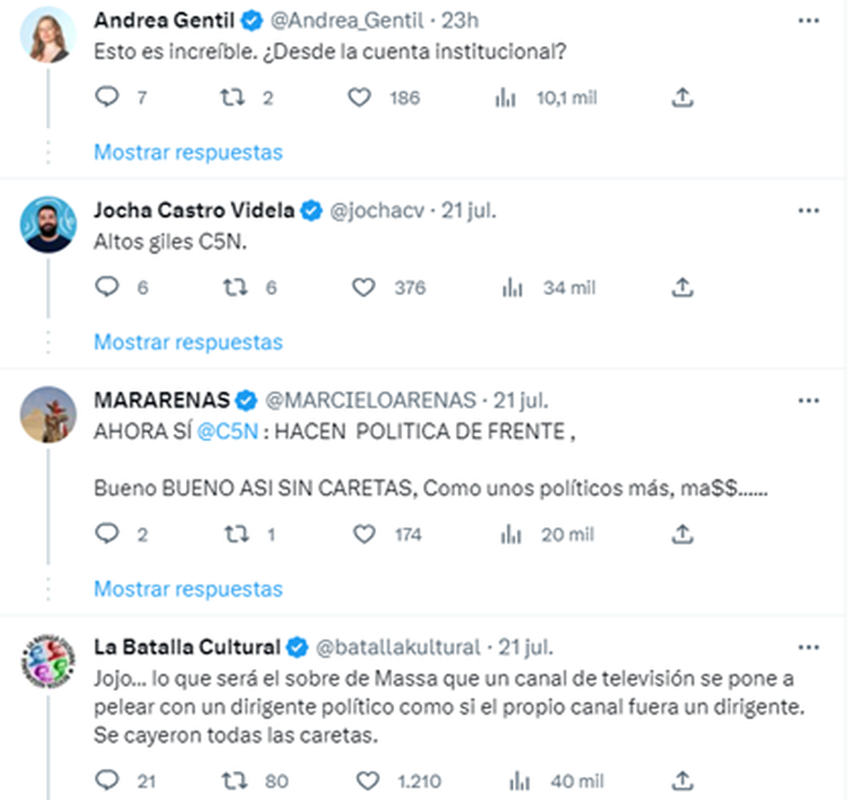 Esa misma jornada, la cuenta de Twitter de C5N publicó su durísima respuesta.