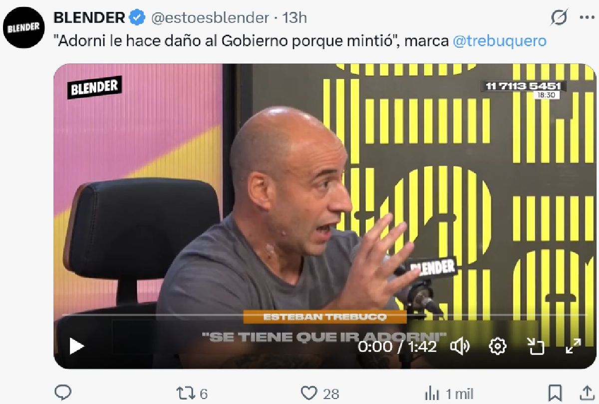 En la tarde del miércoles (15/04) el periodista Esteban Trebucq estuvo como invitado en un programa del canal de streaming Blender y no dudo en opinar contundente sobre Manuel Adorni y los escándalos judiciales que golpean de lleno al gobierno de Javier Milei.