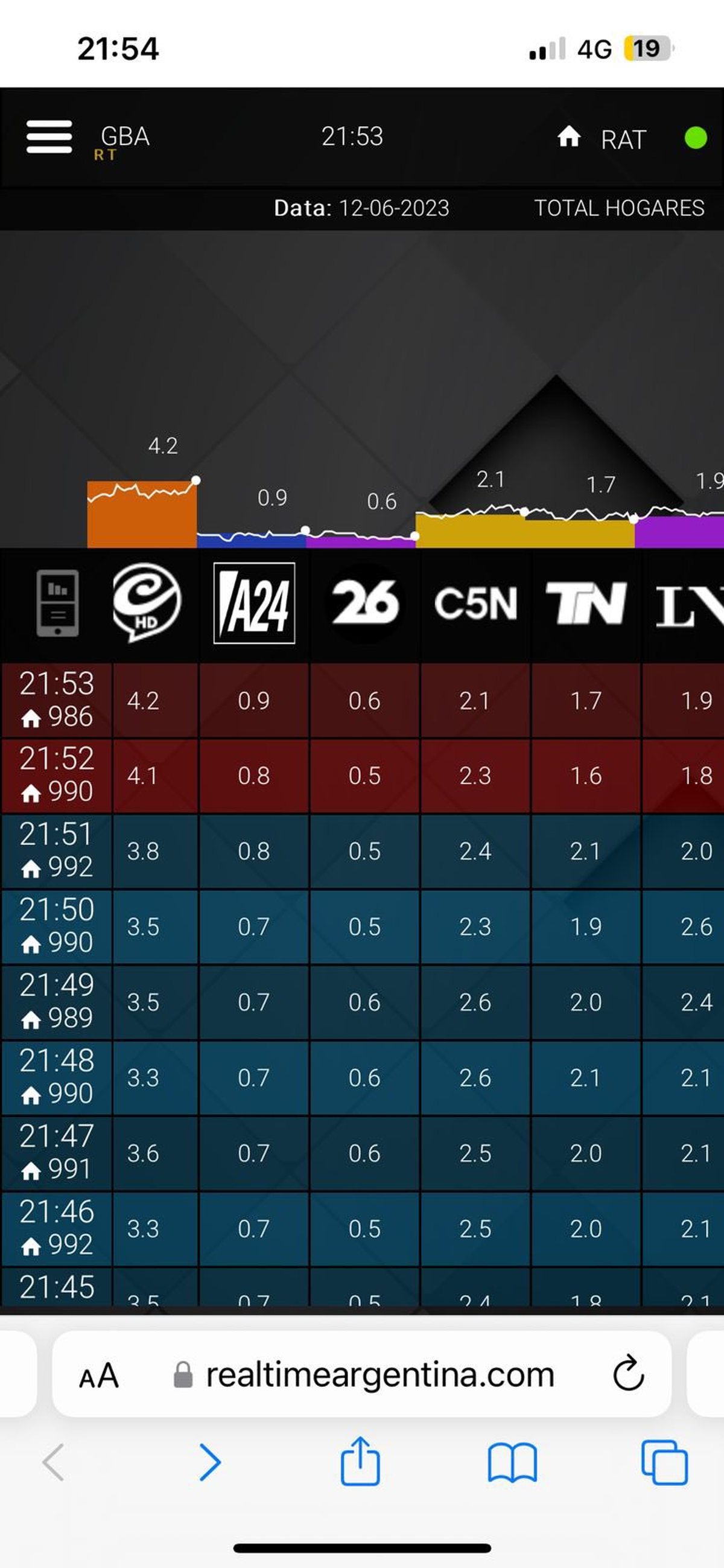Si en mayo lograba picos de más de 6 puntos de rating y un promedio de casi 5, en junio los picos no superan los 4 puntos y el promedio general de su programa apenas roza los 3,5.