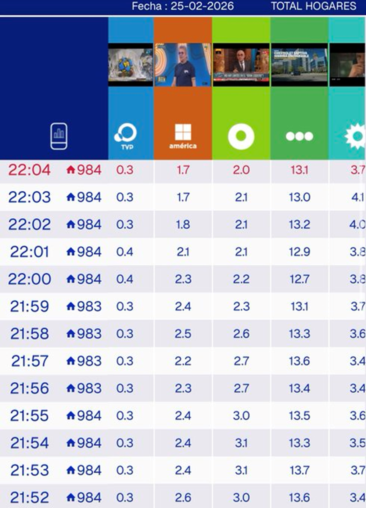 -13,1 a la medianoche (con una ventaja de menos de 10 puntos contra ElTrece)