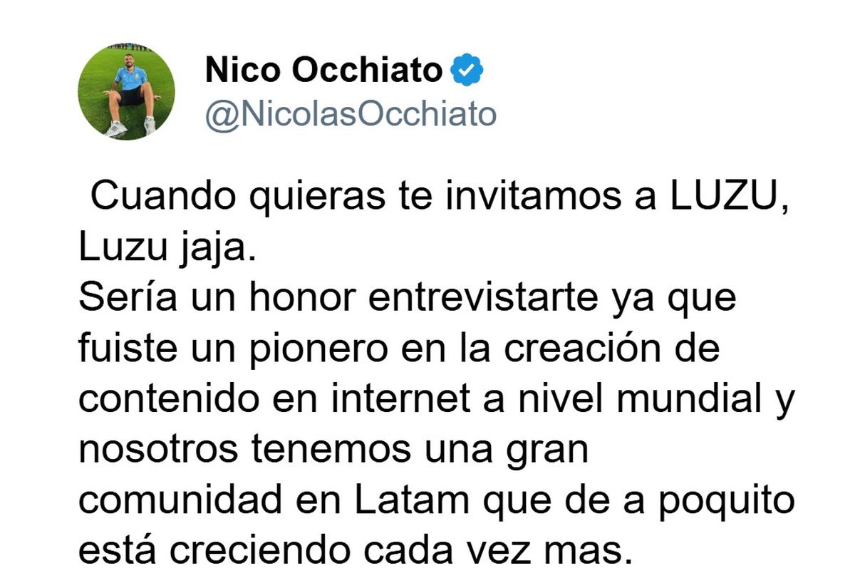 A todo esto, Occhiato lanzó una respuesta en X al descargo del youtuber que, lejos de la confrontación, fue estratégica. "Cuando quieras te invitamos a LUZU, Luzu jaja. Sería un honor entrevistarte ya que fuiste un pionero en la creación de contenido en internet a nivel mundial y nosotros tenemos una gran comunidad en Latam que de a poquito está creciendo cada vez mas", escribió.