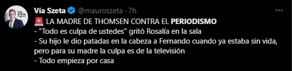 La madre, Rosalía Zárate, acusó sin fundamentos que lo que le ocurría a su hijo, máximo Thomsen, era producto del periodismo. Por lo que es un buen momento para profundizar en esos argumentos. Ella dijo que era toda una mentira producto de los medios de comunicación, y que ya no le importaba más nada.