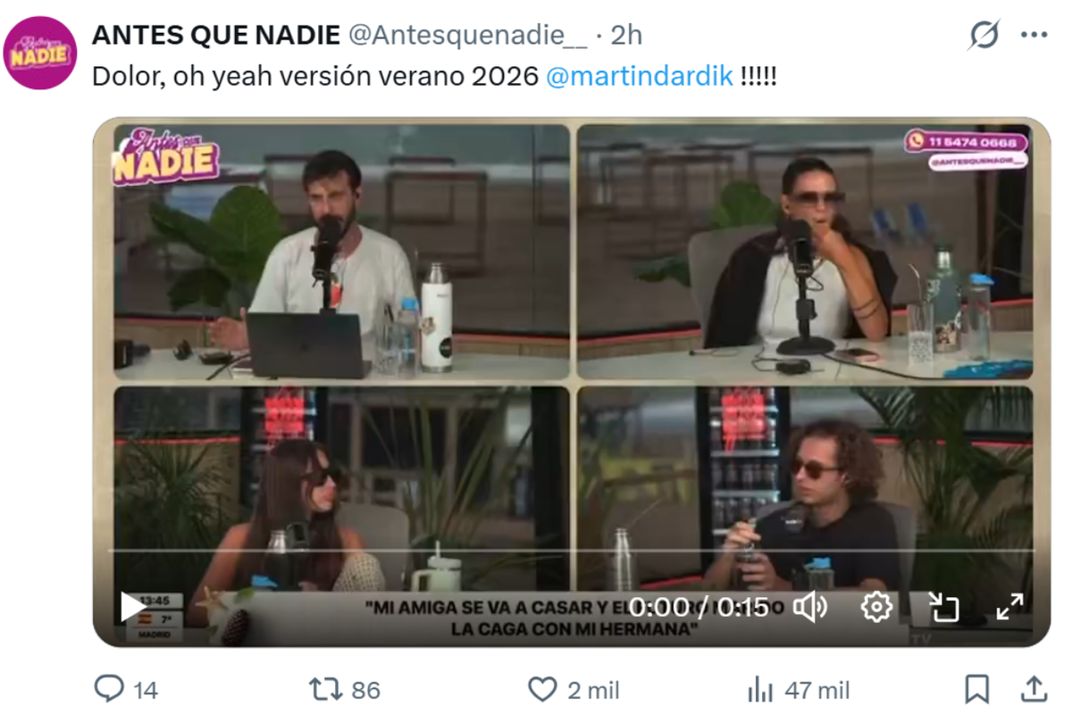 De todos modos cuando se produjo el inicio del programa Nadie dice nada conducido por Nicolás Occhiato, dijo mediante la plataforma Zoom: "Estamos en vivo como en el 2020. Saliendo por Zoom, en ese momento yo preguntaba si había alguien del otro lado, me decían que sí pero eran ocho. Ahora 140.000 personas que están esperando porque se nos cortó la luz", expresó.