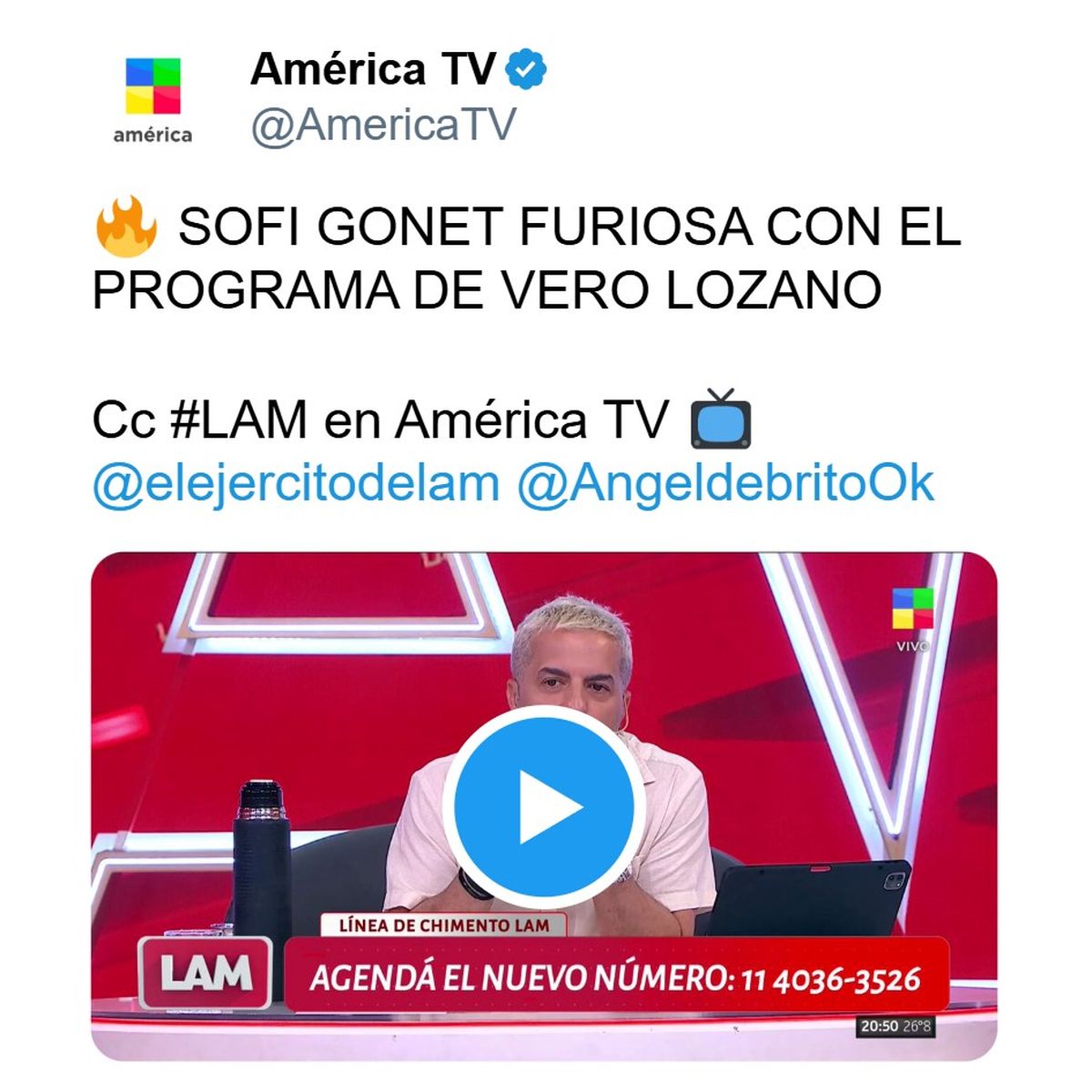 En LAM (América TV), Ángel de Brito aportó otra pieza al rompecabezas: "Se fue enojada. La eliminaron de MasterChef, va al programa de Vero [Lozano] como corresponde, se sentó ahí, primer informe... Homero Pettinato. Se equivocaron. Tenían que poner el de MasterChef y poncharon mal y le tiraron el de Homero. Y ahí se enculó la piba", una explicación técnica que, verdadera o no, no cambia el resultado final: la nota que tenía que ser de cocina terminó siendo de escándalo.