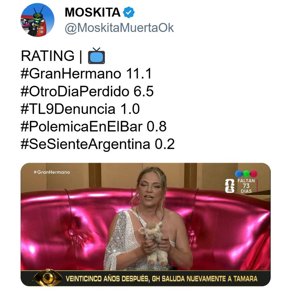 Llevado a los números, hubo un claro impacto inicial según los datos de cuentas especializadas como @plusrating y @moskitamuertaok. Gran Hermano marcó 13.3 puntos a las 23:16, mientras que su principal competidor, Otro día perdido, se ubicaba segundo en 6.5 puntos. Es decir, Telefe duplicó a El Trece en ese tramo, por lo cual el ingreso enganchó indudablemente al público. Incluso se registraron picos de 13.4 puntos, otra muestra de que la jugada tuvo efecto en el encendido.