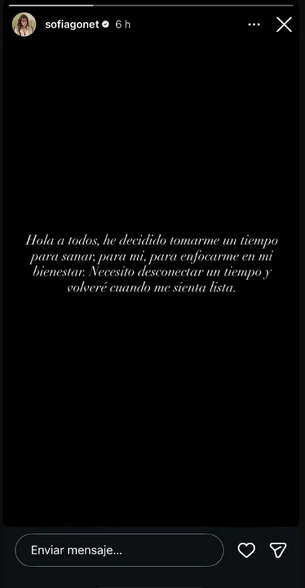Por eso llamó tanto la atención el mensaje que subió esta madrugada. "Hola a todos, he decidido tomarme un tiempo para sanar, para mí, para enfocarme en mi bienestar", escribió. Y cerró sin vueltas: "Necesito desconectar un tiempo y volveré cuando me sienta lista". Nada más. Sin prometer fechas ni dar explicaciones largas, algo que en su caso siempre había sido la norma.