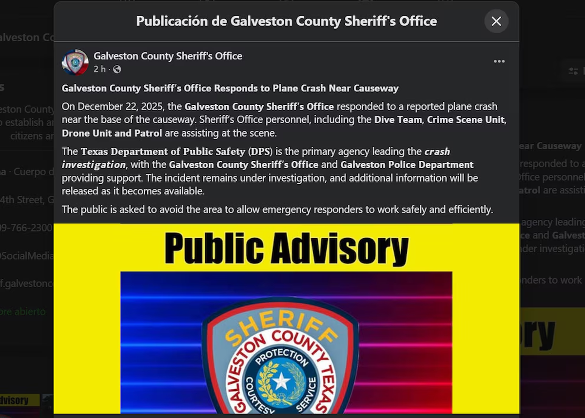 “El personal de la Oficina del Sheriff, incluyendo el sheriff, el personal de rescate, el equipo de bomberos y el equipo aéreo están ayudando en la escena. La FAA es la agencia principal que lidera la investigación", se puede leer en el informe de las autoridades locales.