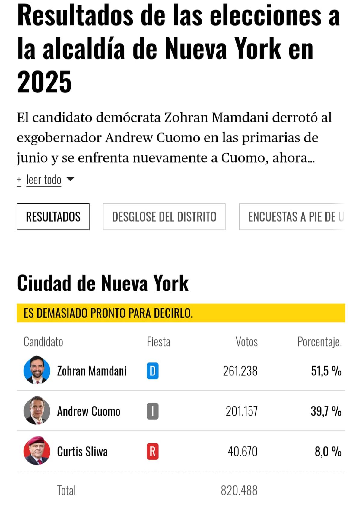 La figura de Zohran Mamdani, futuro alcalde de Nueva York, motivó una enorme movilización (a favor y en contra) del electorado. Derrota de Trump en Virginia.