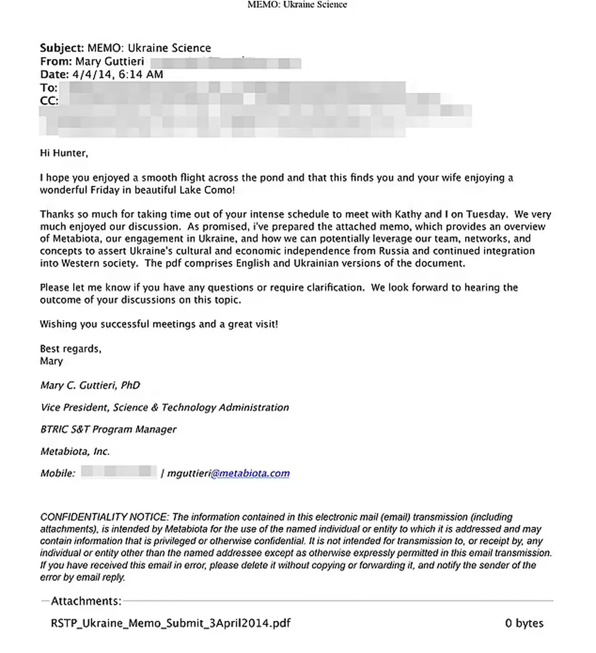 En dicha laptop se encontraban documentos y mails que comprueban la vinculación de Hunter biden con el laboratorio Metabiota, al cual prestó sumas millonarias para su desarrollo en investigación sobre virus pandémicos capaces de convertirse en armas biológicas.