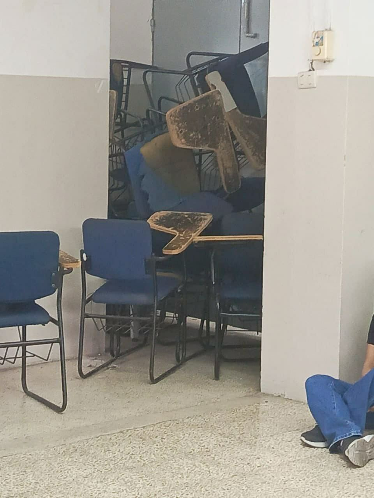 En alguno de los materiales subidos a redes, puede verse a los alumnos atrancando la puerta para que los criminales no ingresaran. Momentos tensos, irrepetibles.