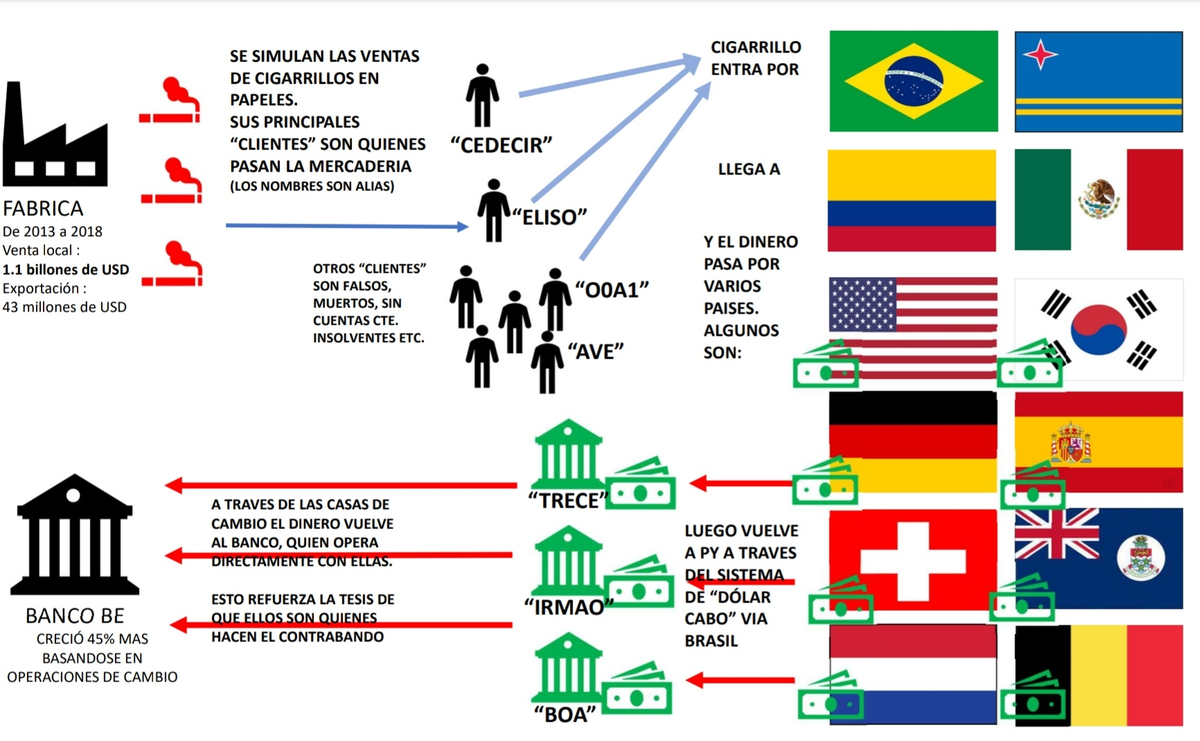 A lo que refiere Efraín Alegre es al informe de la Secretaría de Prevención de Lavado de Dinero o Bienes (Seprelad), que está en poder de la fiscal general, Sandra Quiñónez. Según los diarios ABC Color y Última Hora, tal informe expone que el Grupo Cartes -y otras empresas como su tabacalera Tabesa- "entretejen la compleja red que realiza acciones para facilitar el lavado de dinero proveniente del contrabando de cigarrillos, así como del flujo de mercaderías que se benefician del tránsito por el mismo corredor logístico".