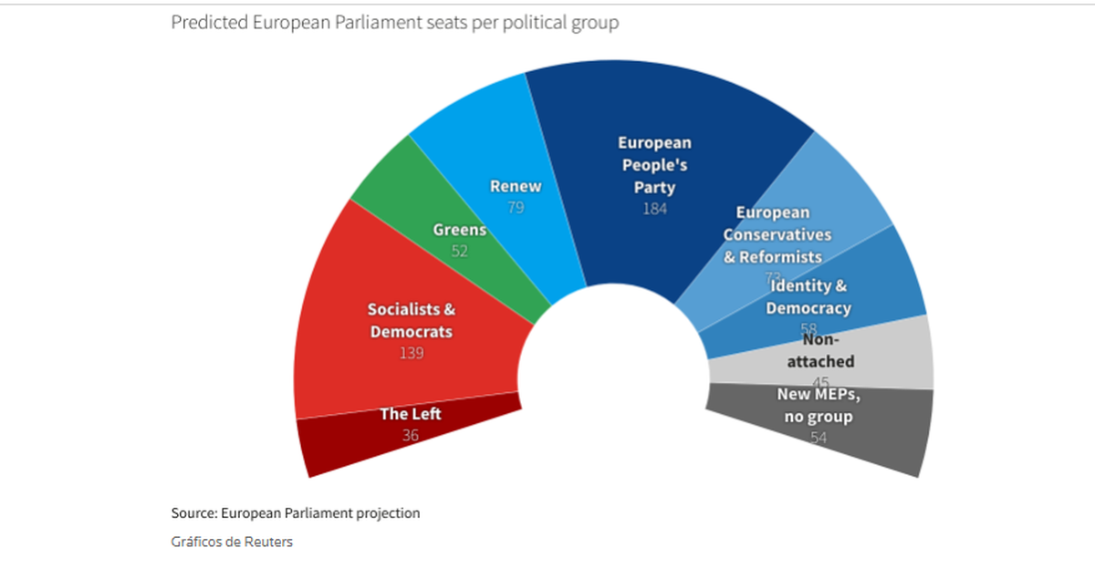 En ese sentido, en un discurso, la presidenta de la Comisión Europea, Ursula von der Leyen, afirmó que los resultados mostraban que su Partido Popular Europeo (PPE) —previsiblemente el más votado— podía seguir actuando como "ancla de estabilidad", pero pidió a sus aliados políticos que ayudaran a protegerse de los partidos extremistas.