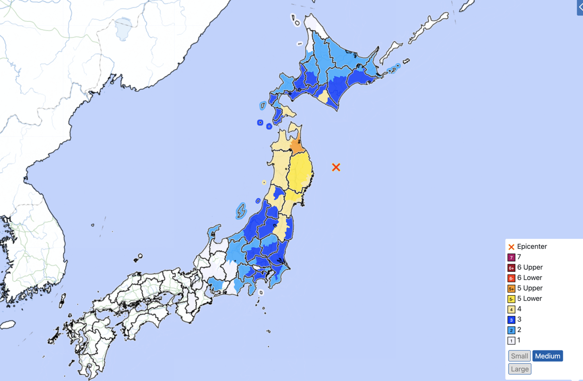 Se han observado olas de tsunami en la prefectura de Iwate y en la isla de Hokkaido, de acuerdo con el sistema de alertas de la televisión pública japonesa NHK, después de que se registrara un sismo de magnitud 7,5 en la costa de Sanriku a las 16:52, hora local, a una profundidad de 10 km y con una magnitud de 5 en la escala sísmica japonesa de 7 en las zonas más afectadas de la prefectura de Aomori, según la Agencia Meteorológica de Japón, la cual, además, advierte del riesgo de un megaterremoto en el norte del país.
