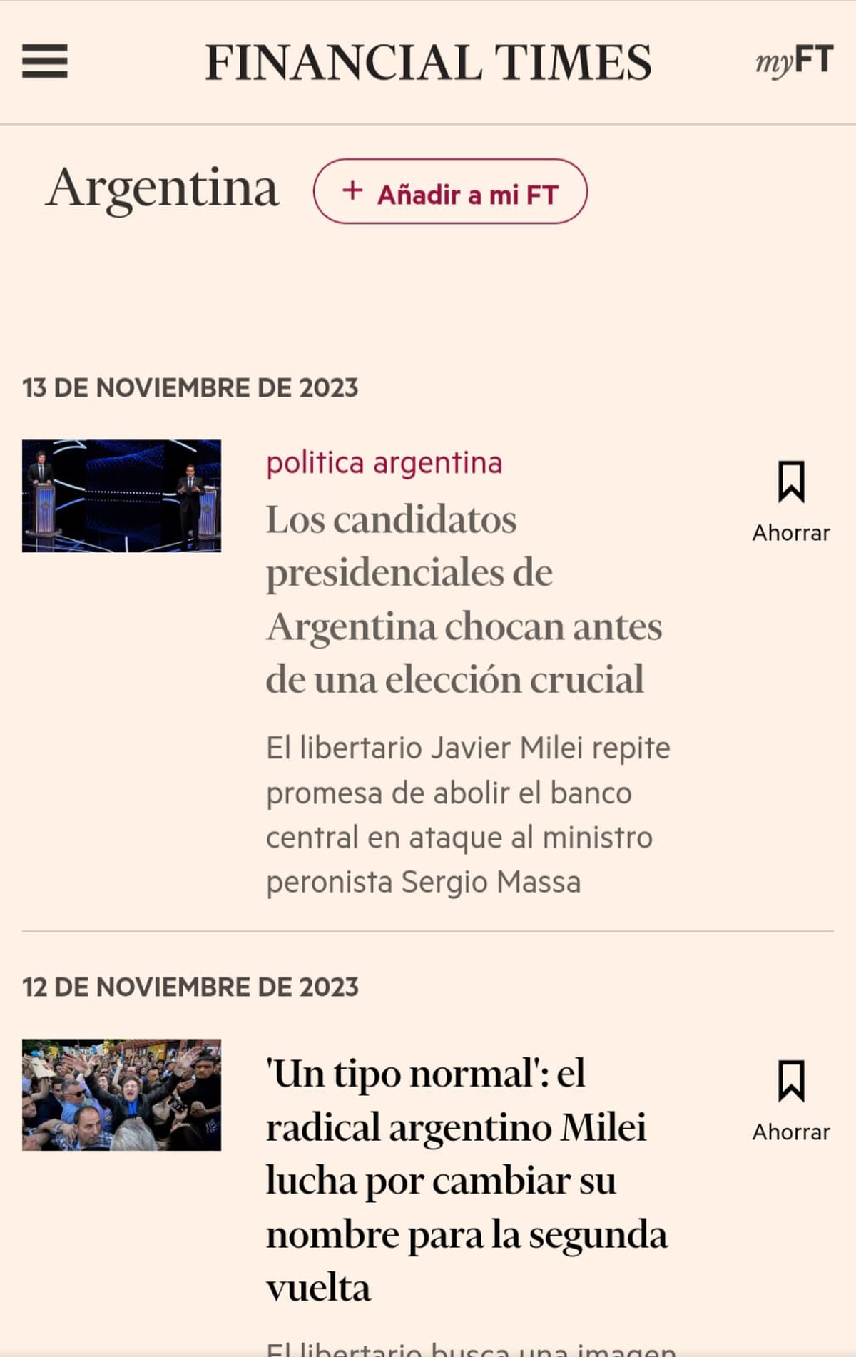 Dicho esto, según el Financial Times que tituló “Los candidatos presidenciales de Argentina chocan antes de una elección crucial/Argentina’s presidential candidates clash ahead of pivotal poll”, a Sergio Massa se lo vio más cómodo frente a Javier Milei al que catalogaron como un ‘libertario outsider’.