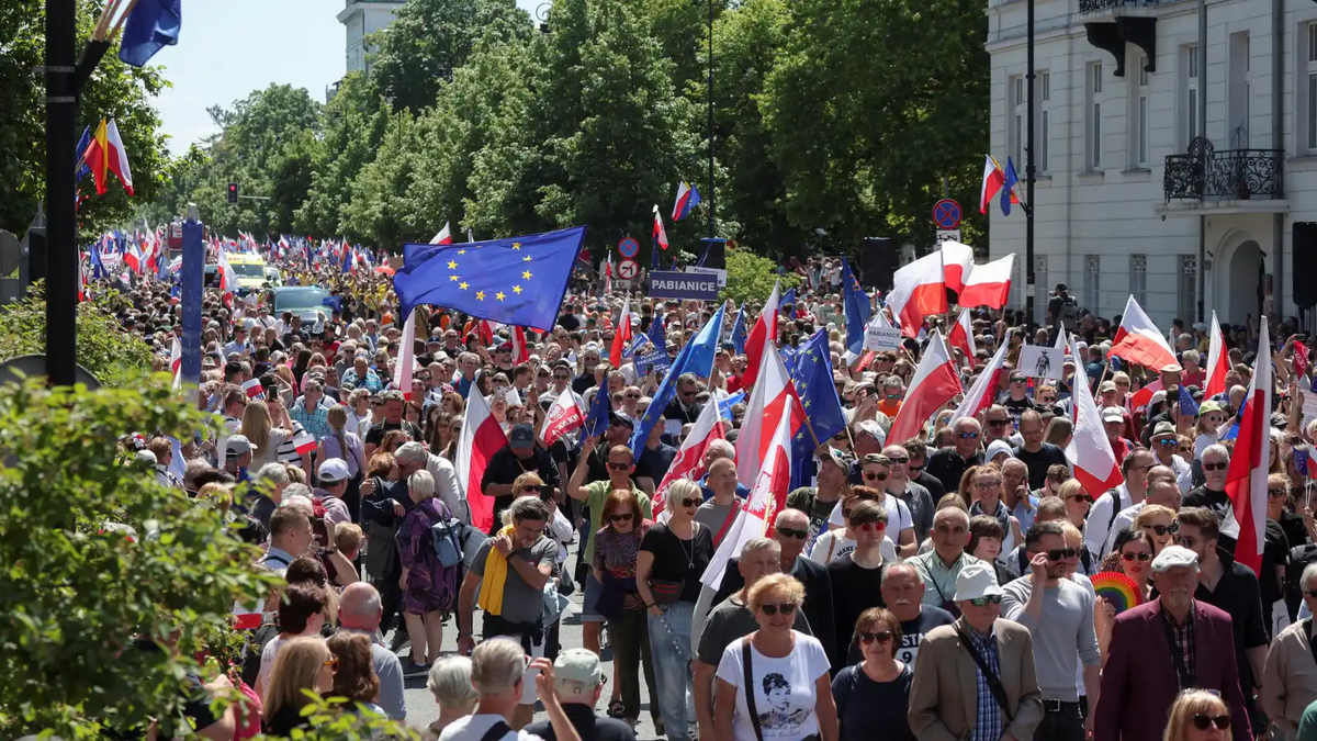 POLONIA. Una imponente manifestación contra el gobierno populista de Derecha de Andrzej Duda, quien es aliado político de Volodymyr Zelensky, desbordó Varsovia para protestar contra la “Ley Tusk” que investigará supuesta influencia rusa en el establishment político local, lo que el pueblo denuncia como una mera “persecución ideológica”.