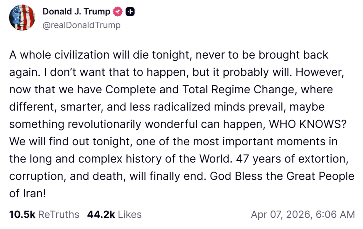 El primer mandatario norteamericano llegó a prometer “la desaparición de la cultura persa” si Teherán no liberaba el Estrecho de Ormuz.