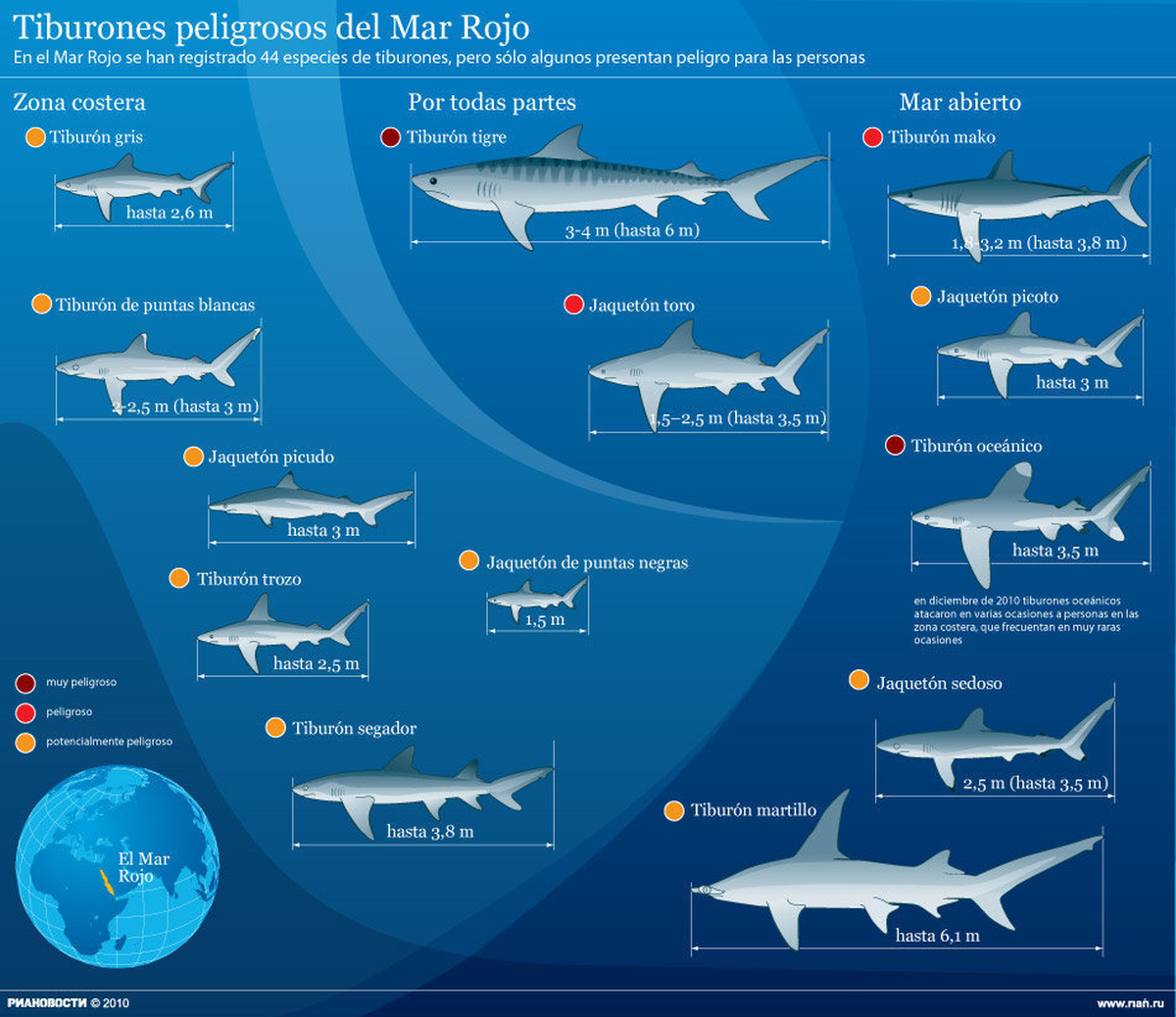 "Un ciudadano ruso murió como resultado del ataque de un tiburón", comunicó el cónsul general de Rusia en Hurghada Viktor Voropayev, según TASS, quien identificó a la víctima como «V. Popov».