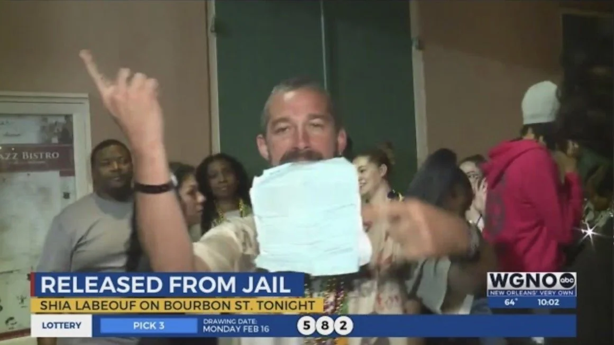 Lo que nadie esperaba fue lo que vino después. Pocas horas tras el arresto, LaBeouf apareció de nuevo en Bourbon Street, collar de Mardi Gras al cuello y con los papeles de su liberación en la boca, bailando entre la multitud.
