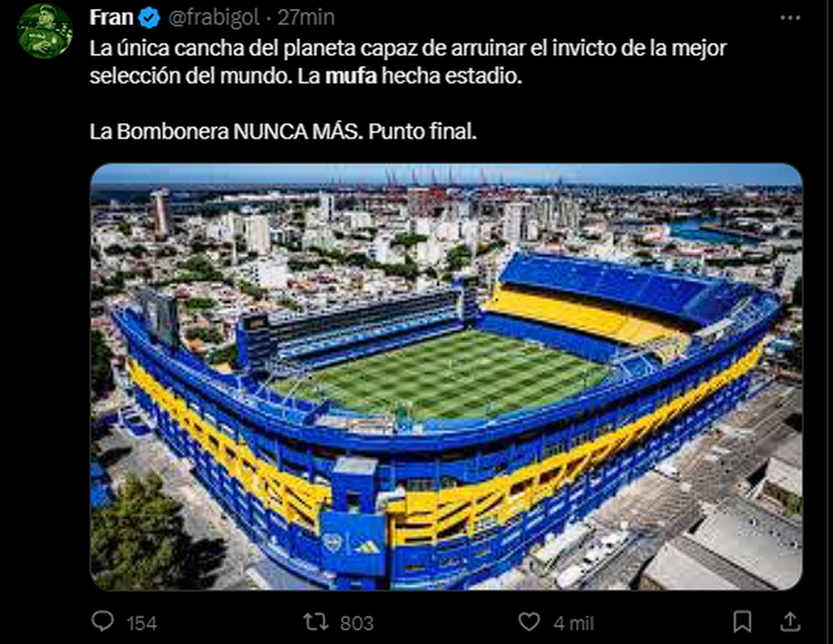 El partido entre la Selección Argentina y la de Uruguay se desarrolló en el estadio de Boca, ni más ni menos, en la Bombonera. Y aunque el resultado inició a favor de los charrúas, no se pudo negar que el público argentino, tanto en redes como en el estadio, lo dio absolutamente todo por apoyar a la albiceleste, a la 'scaloneta'. En este sentido, es importante repasar los mejores memes del encuentro.