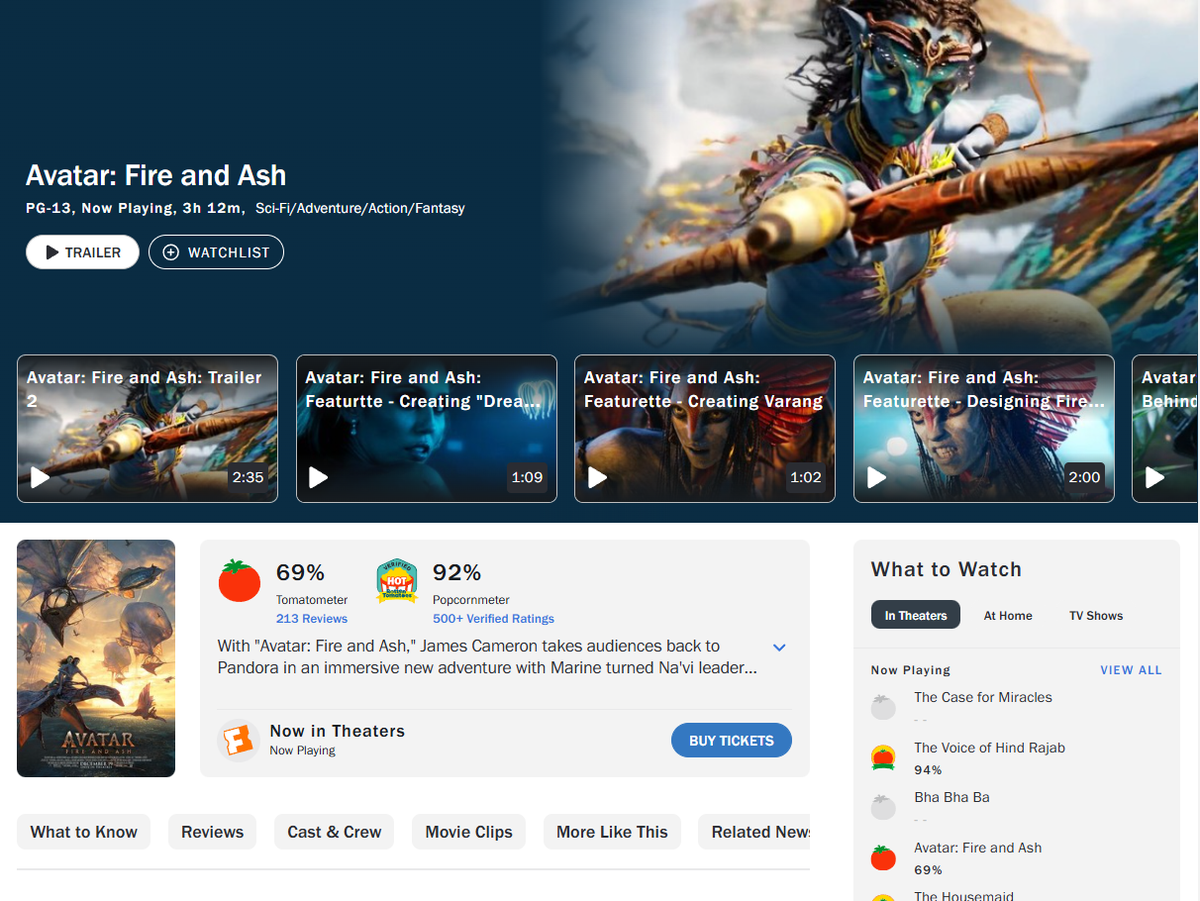El primer golpe vino de Rotten Tomatoes, donde Avatar: Fuego y Cenizas debutó con un 69% de aprobación de la crítica, el registro más bajo de toda la franquicia. Para ponerlo en contexto: la Avatar original (2009) había conseguido 81%, mientras que Avatar: El camino del agua (2022) se quedó con 76%. Una tendencia clara que varios medios marcaron sin vueltas.
