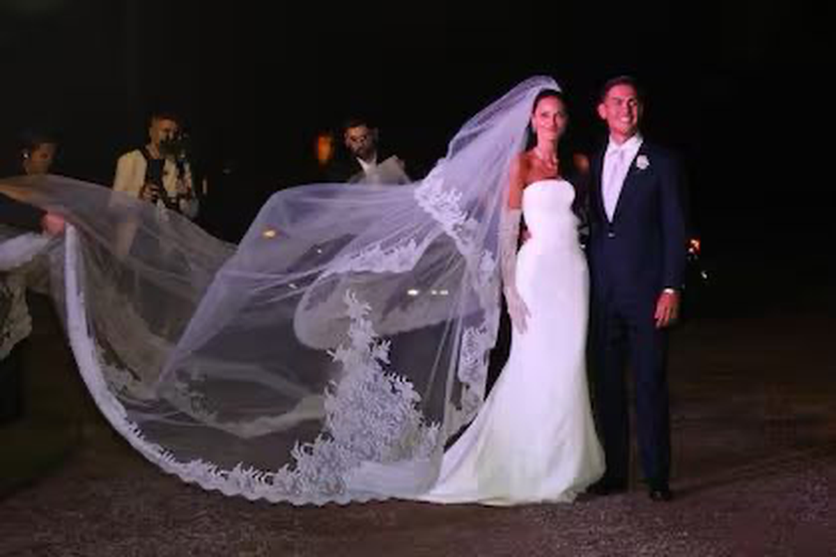 Después de la ceremonia y antes de la fiesta, Oriana y Dybala salieron a saludar ante la prensa que se encontraba esperándolos. Ella mostró el esperadísimo vestido por el cual no dejó de recibir elogios. Un Dolce&Gabbana con un velo precioso que impactó a todos.