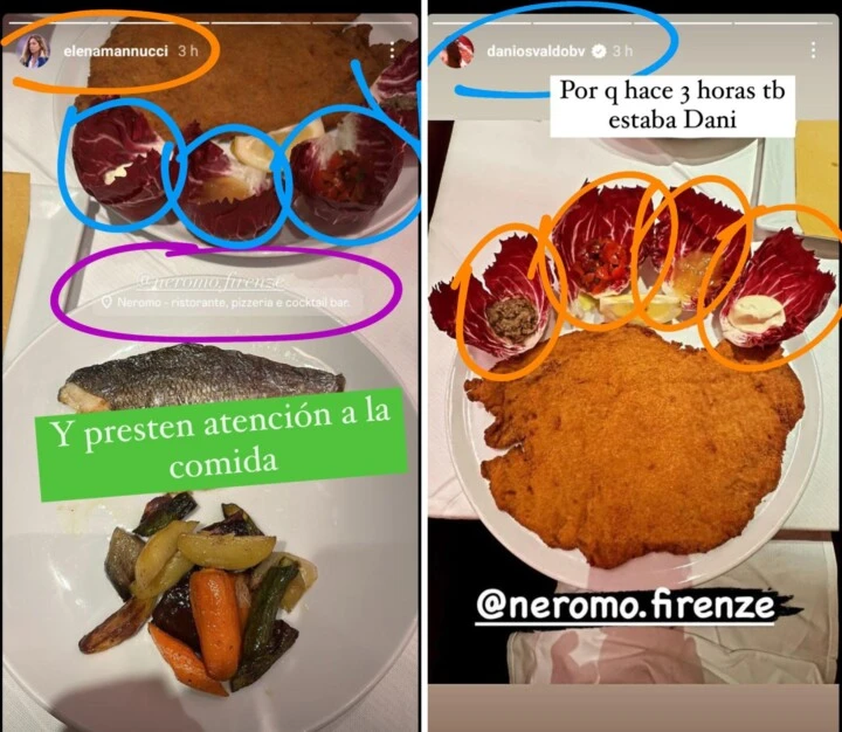 El resto, lo hizo la periodista del espectáculo "Juariu" quien alertó a sus seguidores acerca de que Osvaldo había salido a cenar con la periodista. Mientras que Osvaldo sacó una foto a su plato, la conductora italiana replicó una imagen de la velada donde dejó ver el plato del ex jugador.